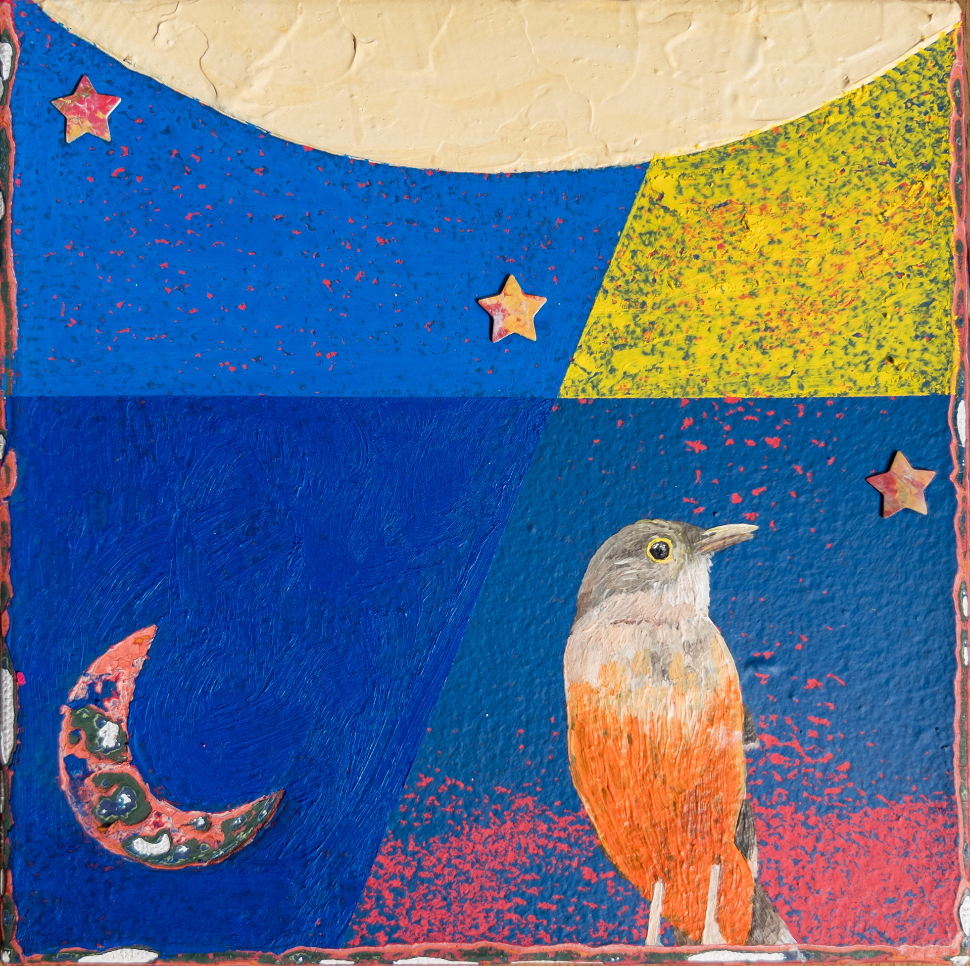 Acrílica e pastel oleoso sobre tela